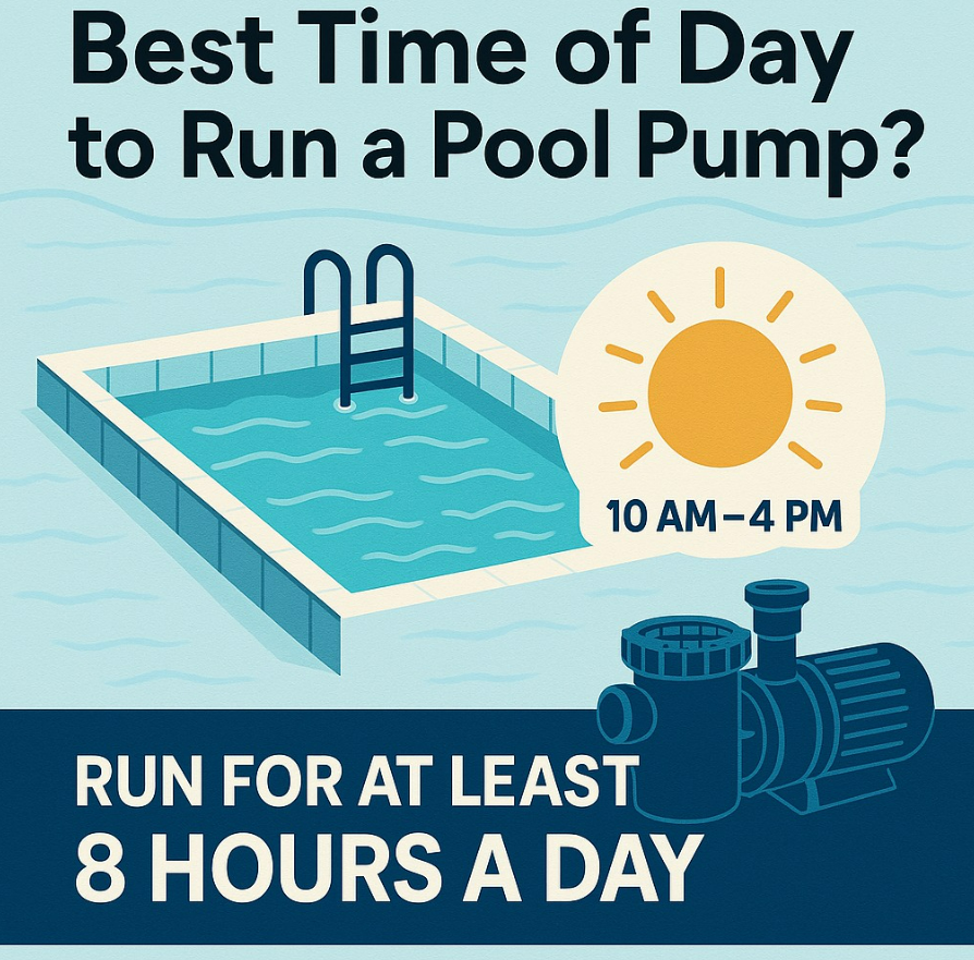 Running your pool pump is crucial to keeping the water clean and safe—but timing matters too! Best Time: Run your pump during the day, especially between 10 AM and 4 PM, when the sun is strongest and algae is most likely to grow. UV rays break down chlorine faster, so circulating and filtering during this time helps your chemicals do their job more efficiently! Want to save on energy? If you’re on a time-of-use electricity plan, consider running your pump early in the morning or late evening to avoid peak rates. You can also split the time—run a few hours in the morning and a few more in the evening. Pro Tip: Most pools do great with 8 hours of circulation per day, but this can vary based on pool size and equipment. Need help setting a pump schedule or upgrading to a variable-speed pump? We’re just a message away.
