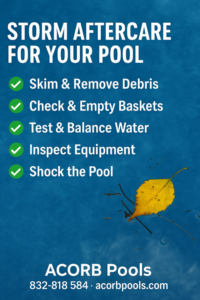 Did the storm just pass through? Your pool might look calm on the surface, but storms can throw off your water balance, clog filters, and introduce all kinds of debris and contaminants.